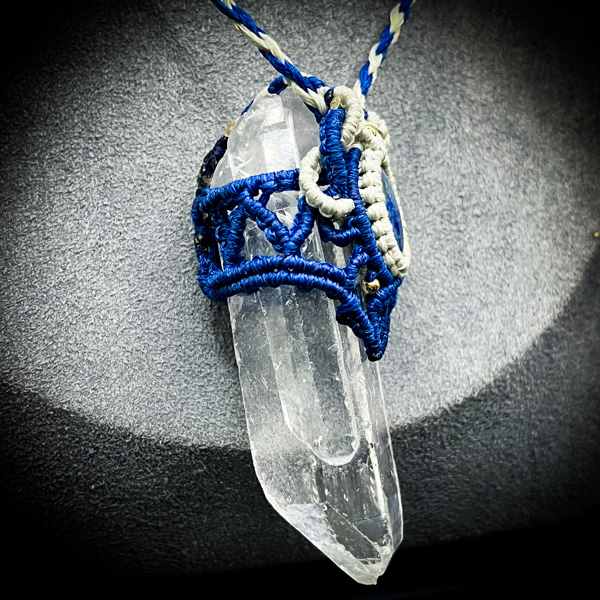 透明なクリスタルに、深い青のラピスラズリが重なる神秘的な魔石。宿っているのは、伝説の泉の魔導。運命を司る泉の水は、世界樹の根を清め、過去・現在・未来を貫く純粋な流れを保つ。その伝説的な清冽さを、この魔石は完璧に宿している。