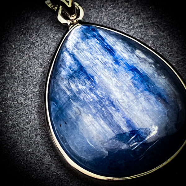深く澄み切った青が広がる「カイヤナイト」は、「浄化と好転」を授けるとして魔術界でも重宝されてきた。その性質は極めて純粋であり、持ち主の内部に溜まり続けた負の感情、悲嘆、停滞、そして連鎖する不運を抹消する。そこにアブラメリンの使者が誇る高度なる「開運秘術」を施す事で、今を変える為の救済魔石へと昇華した。