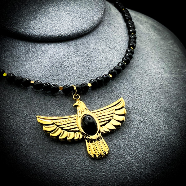 両翼を大きく広げた神々しい姿。その内部に宿るのは、神秘の鷹の魂。世界樹ユグドラシルの頂に棲み、空の果てから全てを見渡す高位魔だ。大地の争いも、人の野望も、栄光と没落も、遥か高みから観測してきた「頂点の象徴」。この魔具は、その魂と契約するための器である。