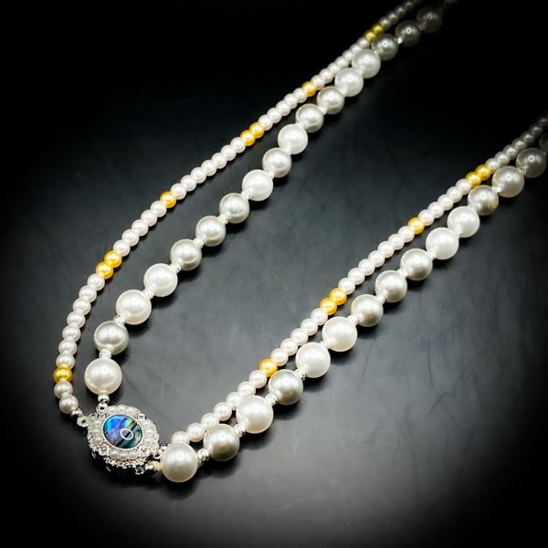 アドラ・カルマリアは、不義と執着を司る女悪魔“アドラ”の力を封じた、極めて危険でありながら甘美な恋愛魔具である。二重に連なる白珠の連環は“二つの運命を絡め取る”象徴とされ、一度この魔具に願いを刻んだ者は、どれほど禁じられた関係であろうと、相手の魂を深層から引き寄せる流れへ巻き込まれてゆく。