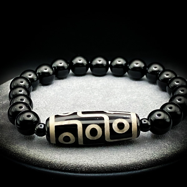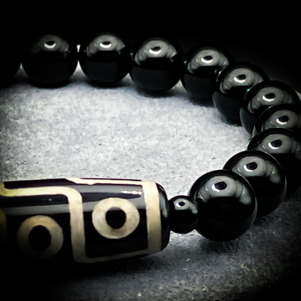 九眼が導き、黒が護る。勝利はすでに貴方のモノ。厳選された「九眼天珠」と「ブラックアゲート」が一つに編まれ、魔力を帯びた時、覇を掴む為の切り札と化す。九眼天珠は古より最強の天珠と呼ばれ、天の九つの眼が主を見守り、勝利と繁栄を絶え間なく注ぎ込むと重宝された。