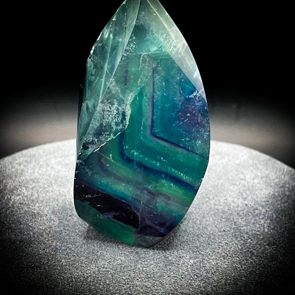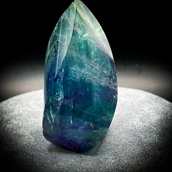 フローライトは、古の治癒術師が“魂の修復石”として用いた伝承を持つ。その美しい青緑の層は、まるで静かな海と空が溶け合う瞬間を閉じ込めたかのように輝き、見る者の心を深く鎮めていく。