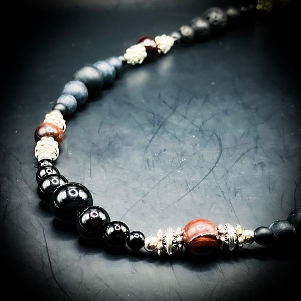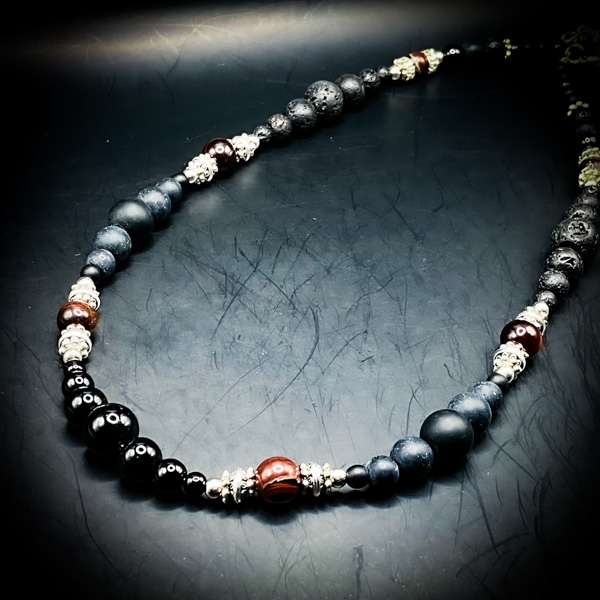 「イノス・タイド」は、深海の闇と荒波を統べる海神イノスが、選ばれし術者に授けたとされる浄化と転換の魔導具である。黒曜の光を放つ漆黒石は“停滞を断つ刃”の象徴であり、赤の魔珠は“運命を燃え立たせる灯火”として、持ち主の行く先に潜む負の潮流を強烈に押し返す。
