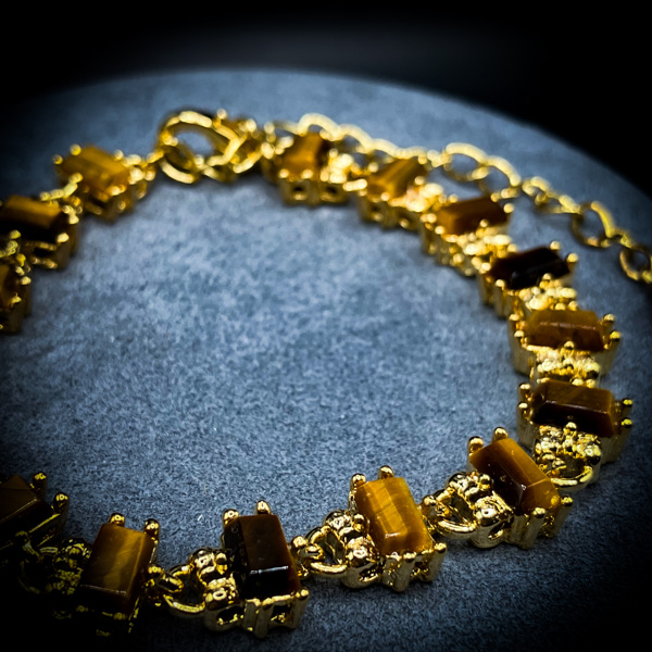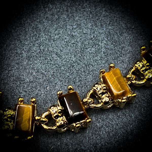 このブレスレットには、富と繁栄を司る守護者“アルマン”の力が封じられている。彼は古代の商人たちが密かに崇拝した「黄金の目を持つ守護精霊」として伝わり、真の価値と好機を見抜く眼を持つ存在である。その力を宿した「黄金のアルマン」は、金運・仕事運・事業運を活性化させ、持ち主が望む豊かさを現実に引き寄せていく魔術具だ。