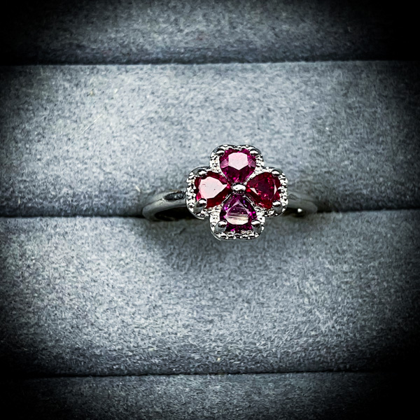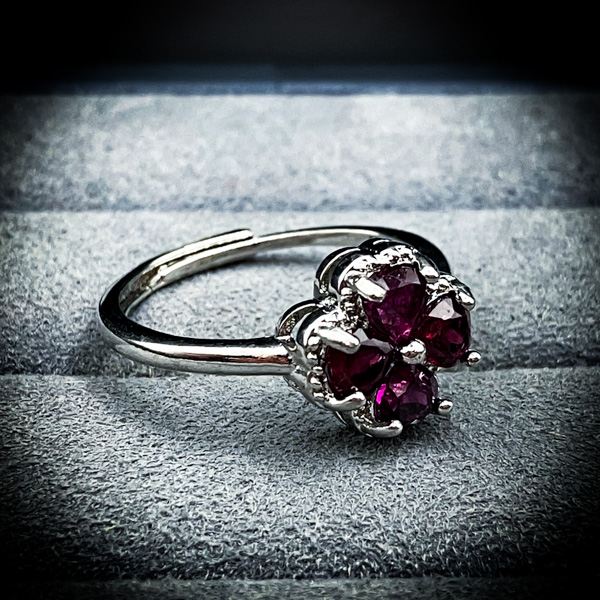 古来より生命力と情熱を与える「ガーネット」で、不幸が存在できない人生へ。熱く脈打つその光は、術者の内側に眠る「生き抜く力」を呼び覚まし、どのような停滞や困難に対しても、立ち向かう以前に解消してしまう。そこにクローバーの形を与えた事で、常在する幸福を定着させる器へと昇華した。