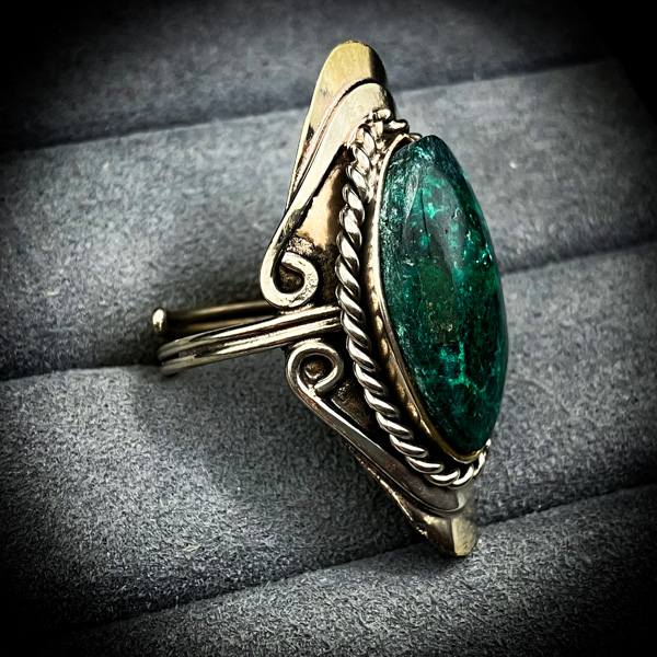 アブラメリンの使者により初登場と成る「クリソコラ」。大地と深く繋がり、地球の鼓動と同調する事で、術者の内側に滞るすべてを解き放つ【生きた魔石】である。視線を落とし、その色彩を見つめるだけで、世界はゆるやかに波動修正され、心身は浄化される。